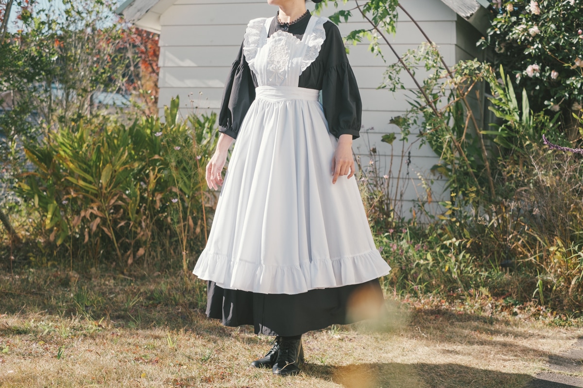 シックなのでエプロンの色を黒にしても綺麗、メイド服のように白にして合うこと間違いなし。